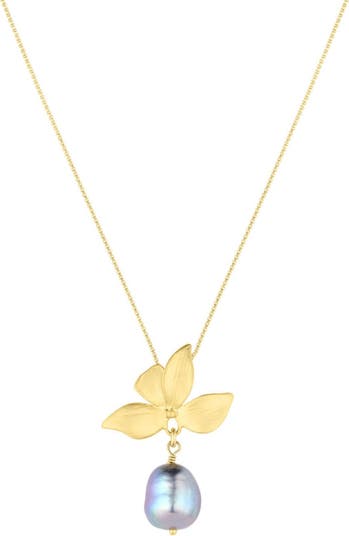 A delicate flower pendant finished with a freshwater pearl lends elegant, feminine charm to this simple chain.