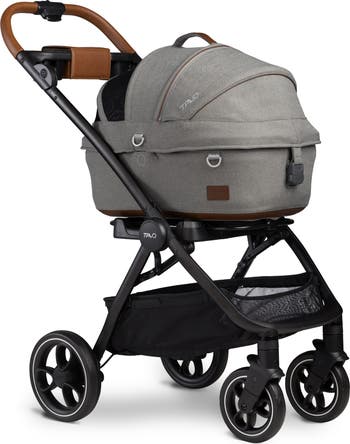 Why pets will love it: The carrier gives your pet a safe, familiar space to curl up wherever they are. It is designed with a comfortable pod and structural UPF sun canopy to create a cozy space. Mesh ventilation panels allow for airflow and a view of the world around them, and rubberized feet keep the carrier steady as your pet jumps in and out. A connected leash keeps your pet safe while on the go with the canopy open. The carrier comes with a plush mattress and two mattress covers that are machine washable. The stroller's multiterrain suspension accommodates bumps wherever your stroll takes you.