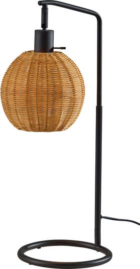 An open-ring base furthers the sleek aesthetic of this lamp that casts a warm pool of light from its round rattan shade that brings a natural element to your decor.