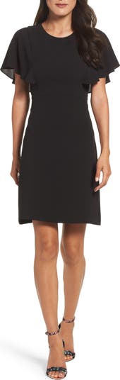 Airy, crisp crepe gives great flow to this statement-sleeve sheath balanced by an A-line skirt.
