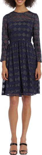 Fit to flatter, this charming dress features a scalloped burnout design with a swingy A-line skirt.