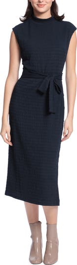 A sophisticated sleeveless dress with a sash at the waist is the perfect closet staple.