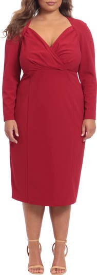 Get that two-piece tucked look that you love without the bulk in this midi dress featuring a gathered bodice and a high waist.