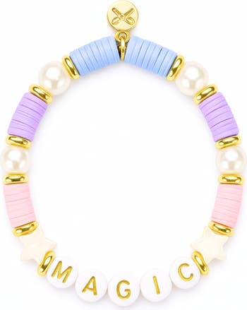 The Magic Bracelet celebrates the wonder, imagination, and sparkle that make childhood so special. Featuring playful beads and gold letters spelling MAGIC, this bracelet adds a touch of charm and enchantment to every day. From tea parties to tennis matches and everything in between.