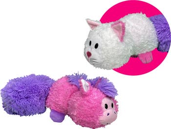 FLIPAZOO: MAGIC TAILS - PINK UNICORN TO WHITE CAT - FlipaZoo is bringing you New Flipping Magic! Introducing FlipaZoo Magic Tails, the next evolution in 2-in-1 FlipaZoo with super soft magic tails. FlipaZoo Magic Tails snuggle up into their tails and Magic Tails have a drawstring to store your favorite things! FlipaZoo is an imagination-inspiring playtime product, that doubles as a pillow for naptime, daycare, and family travel and now provides storage too. Each FlipaZoo Magic Tail is a cuddly companion with a fluffy magic tail that offers two times the comfort at home or on the go and stores your treasures too! Made of the most huggable, high-quality materials. The FlipaZoo Magic Tails line are characters that transform from one animal to another - and then easily flip back again and snuggle into their tails too! Little ones can simply hold their favorite two-sided FlipaZoo friend, "flip" its soft back, and instantly reveal a totally new FlipaZoo! Explore a whole world of Magic Tail fun with the only 2-in-1 FlipaZoo Magic Tails. Not One! It's Two! It's FlipaZoo! Originality - Made by the creators of The Original FlipaZoo!