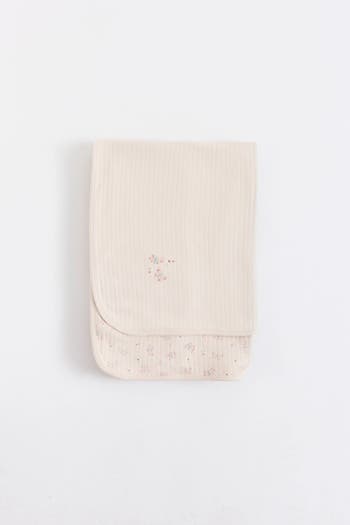 Morley blanket made of soft cotton. It features a print on one side and a plain side with embroidery. It's perfect for covering or swaddling your baby, providing extra comfort and warmth. A practical and cozy option for caring for and protecting your baby at all times.