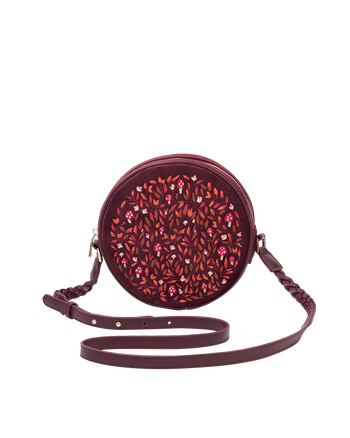 Magical Mushroom Embroidered Burgundy Velvet Circle Bag