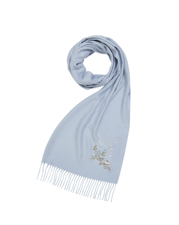 Magical Mushroom Embroidered Cosy Blue Scarf