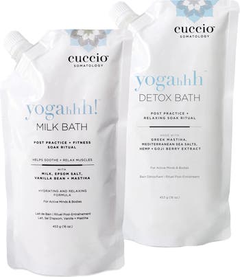 - How To Use: Use 3/4-1 cup of Cuccio Somatology Bath Soak. Soak in the bath for 10-20 minutes. Rinse and dry off with a towel.