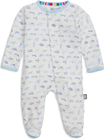 Plentiful planes cruise across a supersoft jersey footie designed with magnets instead of snaps or zips for easy changing.