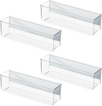Turn wasted space into valuable storage with our iDeisgn Magnetic Organizer Bins. Each bin in this 4-piece set easily mounts to any metal surface so you can quickly arrange, position, and remove for mess-free organizing. The clear, open-top design keeps supplies neat and visible to help eliminate clutter while the raised front keeps items securely in place and prevents them from falling. Constructed of durable, shatter-resistant plastic, this organizer bin brings convenient, hassle-free storage where you need it most. With iDesign, you can live simply every day.