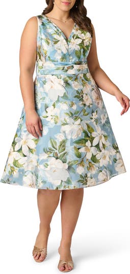 Lustrous floral jacquard brings soft sheen to this day-to-dinner dress cut in a classic fit-and-flare silhouette.
