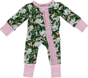 Laree + Co's luxuriously soft ruffle one-piece convertible footie with three-way zippers is a game changer. Our footies make diaper changes a breeze and are also perfect for our little warriors with tubes and wires - no snaps needed! Medical mama designed and approved!