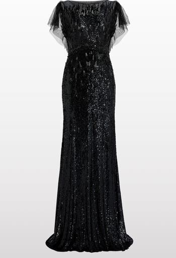 Magnolia is an opulent gown that shimmers with every movement striking a balance between modern glamour and delicate romance. The fitted silhouette is framed by a sheer overlay with soft sleeves and a graceful boat neckline. Sequins arranged in an scattered pattern create a shimmering, light-catching effect, while a defined waist adds flattering structure. Designed for occasions that call for elegance with a contemporary edge.