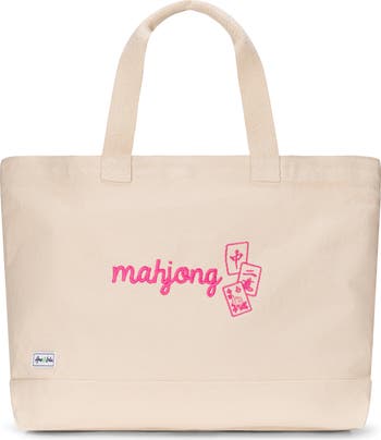 - Our new Large Tote — made just for mahjong. Thoughtful embroidery detail on the outside, a zip interior pocket inside. Designed to hold your racks, tiles, and mat — and keep you looking stylish on your way to game night