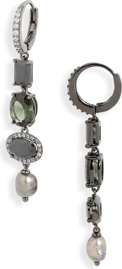Cultured pearls, crystals and cubic zirconia give a vintage-inspired glow to these decadent drop earrings plated in 18-karat gold.