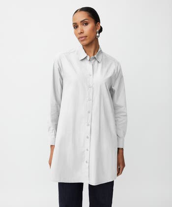 Masai's feminine take on the classic shirt fits perfectly, designed in an A-shape cut with crinkled cotton. The shirt also has long sleeves, a rounded hem, and is longer at the back.