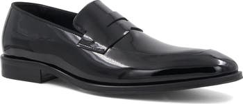 A glossy, liquid-shine finish elevates the formality of a loafer crafted in Italy with a traditional penny strap and a softly squared apron toe. Blake stitching along the sole provides flexibility and comfort while emphasizing the smart, streamlined profile.
