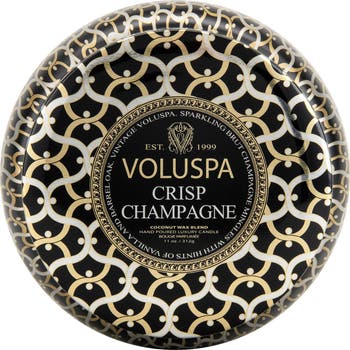 Fragrance story: Sparkling brut champagne mingles with hints of vanilla and barrel oak. Voluspa candles are hand-poured in the United States from sustainable, ecologically sound, pesticide-free manufacturing. The candle features a proprietary coconut wax blend and a 100% cotton wick.