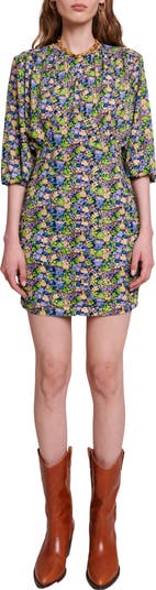 A ruched skirt adds an extra element of texture to a sunny and sophisticated minidress in a vibrant floral print.