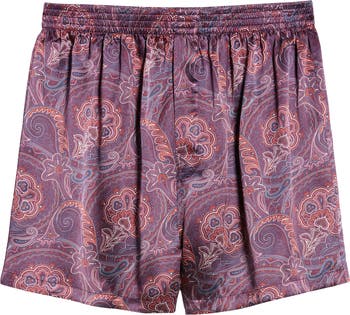 Handsome paisleys swirling in muted jewel tones elevate the appeal of these soft silk boxers.