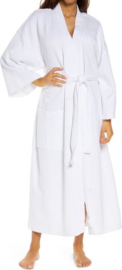 Satin trim and a soft waffle knit define this plush longline robe that was made for lounging.