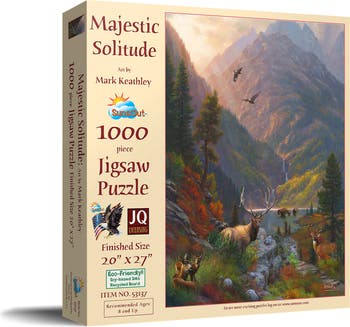 Indulge in the breathtaking beauty of nature with the Majestic Solitude 1000 Piece Jigsaw Puzzle for Adults, a masterpiece created by eminent artist Mark Keathley and brought to you by SunsOut Puzzles. Featuring the serene elegance of wildlife set against a backdrop of majestic mountains, this picture-perfect puzzle offers both relaxation and challenge for puzzle enthusiasts. Proudly crafted in the USA with high-quality recycled cardboard, SunsOut puzzles ensure a secure interlock and smooth assembly, thanks to their precision fit and superior quality. The vibrant hues are brought to life by eco-friendly soy-based inks that beautifully highlight every intricate detail. With a commitment to excellence reflected in their worry-free warranty, SunsOut guarantees customer satisfaction, ensuring the puzzle experience remains stress-free and enjoyable. As a woman-owned small business, SunsOut is dedicated to environmental sustainability, creating every puzzle with the highest quality recycled board and environmentally friendly materials. This captivating puzzle measures 20" x 27" upon completion, serving as a grand testament to the tranquil wilderness. Whether you choose to assemble it alone or with loved ones, the puzzle doubles up as a brilliant display piece or a symbol of accomplishment from piecing together a mesmerizing scene. Add the Majestic Solitude puzzle to your collection today to experience a serene journey into nature with every piece you fit together.
