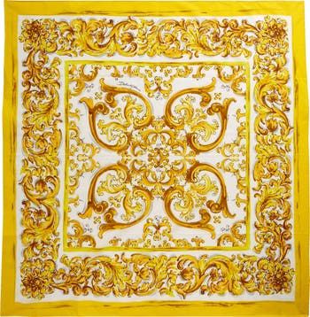 A vibrant print inspired by hand-painted majolica tiles emboldens this square scarf cut from light and airy cotton.
