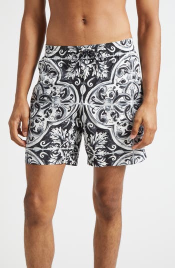 A fresh take on the Italian house’s beloved majolica print, these swim trunks balance bold patterning with a sleek, stretchy fabric that’s built to last whether you’re poolside or catching waves.