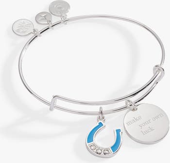 With a little luck, every moment is an opportunity to manifest your dreams. This “Make Your Own Luck” Duo Charm Bangle features two charms: a circular charm engraved with “Make Your Own Luck” and a lightning bolt charm accented with a sparkling clear crystal, both on an expandable wire bangle bracelet. Wear it — or gift it — as a reminder that you’ve got the power to make it all happen.