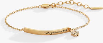 With a little luck, every moment is an opportunity to manifest your dreams. This Engraved Bracelet features an engraved plaque that says “Make Your Own Luck” inline on an adjustable-length chain bracelet, with a crystal four-leaf clover charm. Wear it — or gift it — as a reminder that you’ve got the power to make it all happen. Because it’s gold-tone stainless steel, it’s durable and scratch-resistant so you can wear it on repeat.