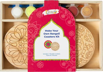 MAKE YOUR OWN RANGOLI DIWALI COASTER KIT by Kulture Khazana is a great way to create long-lasting memories while experiencing the holiday. The kit includes 4 wooden coasters with traditional Indian Rangoli designs, paint colors, and 2 paint brushes. Rangoli (Ron-go-lee) stands for good luck, hope, and beauty. Traditionally, Rangolis are created on the floor using colored sand, rice, paints, and flowers. This kit provides everything you need to paint your own traditional Rangolis and use them as coasters. What a great way to display your art around the house. A great Diwali classroom or a party activity and a fun way to spend an evening with the family. Celebrate Indian and South Asian festivals while making your own Rangoli Coasters. Kulture Khazana is focused on developing a product line that helps families make heritage and culture accessible and shareable. Kulture Khazana LLC was founded in 2018 with the goal of sharing Indian cultural stories with children through educational and play activities. Today, their collection of affordable and accessible books, toys, games, and online story albums can be found in homes, schools, and libraries around the world. Whether you’re a parent, a library, a media outlet or kids looking to have fun, building community starts with the treasures of home, and we’re here to help bring them to you.