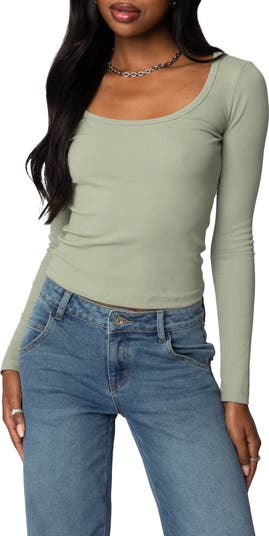Svelte and warm, this layering scoop-neck top is an essential layer for entering the in-between seasons in style.
