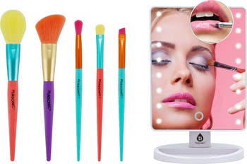Makeup Essentials Duo - LED Countertop Mirror + 5-Piece Brush Set