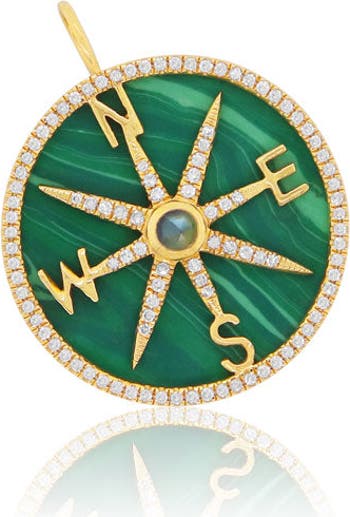 Malachite and Diamond Halo Compass Charm