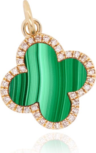 This sparkly Malachite Diamond Clover Charm is a charming classic! Slide it onto any chain for an elevated look.