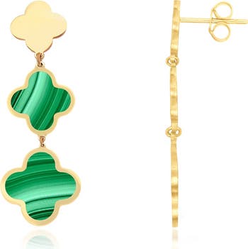 Malachite Graduating Clover Dangle Earrings