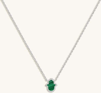 Malachite Hamsa Pendant Necklace in Sterling Silver Peaceful Mind