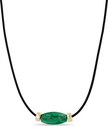 A leather cord is strung with malachite and 14-karat-gold beads for an earthy meets refined look in this stack-friendy necklace.