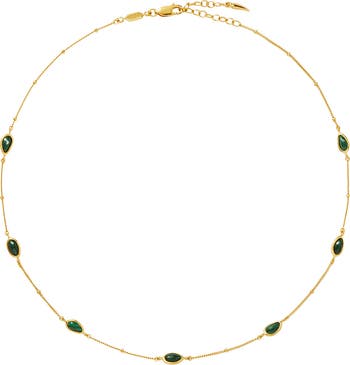Organic-shaped malachite stones symbolize transformation on this delicate chain choker crafted from 18-karat-gold vermeil.