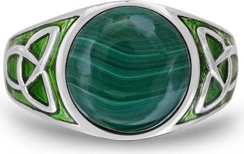 Malachite Sterling Silver Men Signet Ring With Enamel
