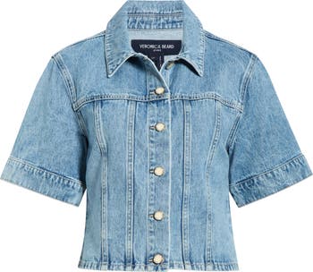 Creating a casual-cool layered look is a breeze with this short-sleeve jacket fashioned from nonstretch denim.