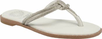 The MALDIVES t-thong slip-on sandals are a chic summer essential, featuring rhinestone-adorned straps that bring a sparkling touch of sophistication to any outfit.