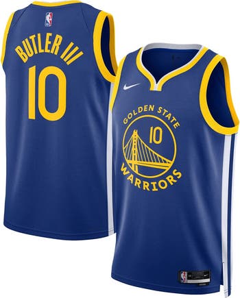 Rep your favorite team and player all season long with this Jimmy Butler III Golden State Warriors Icon Edition Swingman Jersey from Nike. This Icon Edition jersey features classic trims and heat-applied twill details that put a fresh spin on an iconic look. The double-knit mesh fabric utilizes Dri-FIT technology to wick away moisture and keep you cool and comfortable all game long.