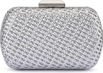 Intricately woven faux leather brings stunning dimension to a metallic frame clutch featuring an optional chain strap for convenient hands-free wear.