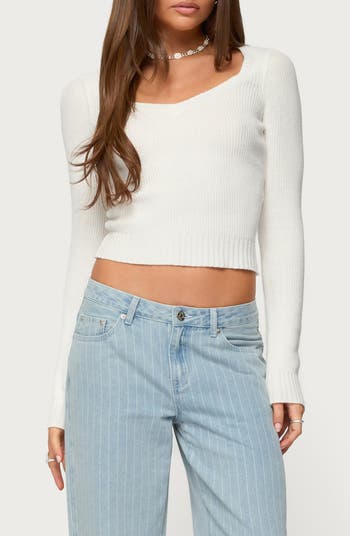 Stay cozy and look chic in this soft pullover sweater textured by ribbed stitches and knit in a cropped, figure-hugging fit.