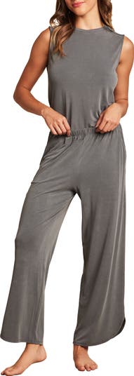 These lounge-worthy pajamas are inspired by the laid-back ease of California in faded sand-washed jersey that pairs a sleeveless top with relaxed wide-leg pants.