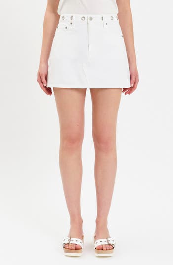 Keep it cool and classic in this closet-staple miniskirt made from nonstretch denim in a crisp white wash.