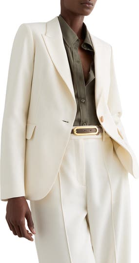 Peaked lapels and expert tailoring polish a desk-to-dinner jacket simply closed with a single button.
