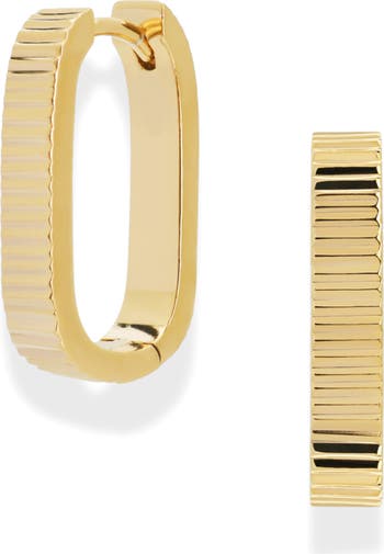 A lightweight design ensures daylong comfort in these elongated hoop earrings shining with a ribbed texture.